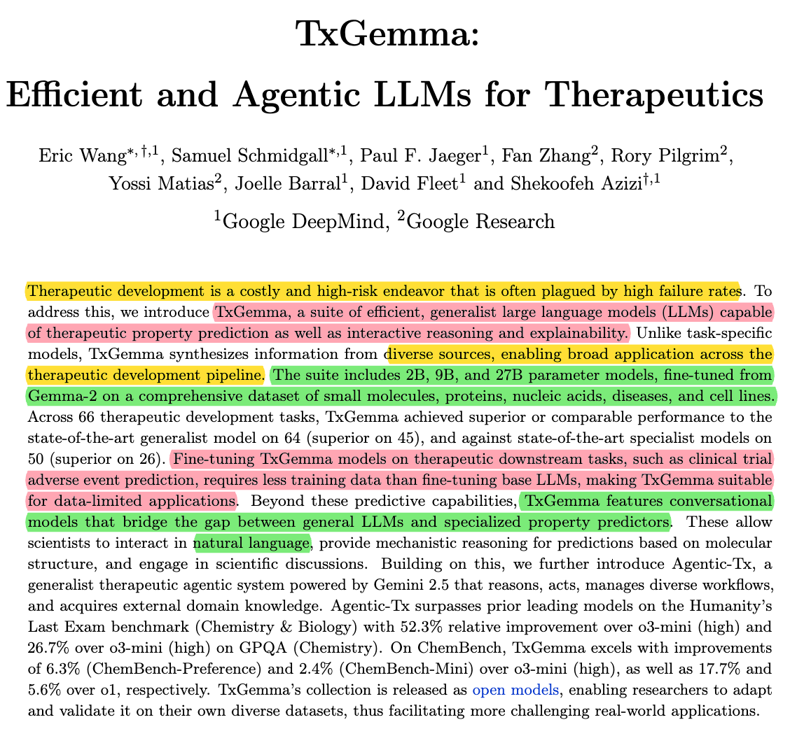 Google introduces TxGemma, a new family of open models from Google designed to accelerate the often slow and complex process of therapeutic development. Building upon the foundation of Google DeepMind's Gemma models, TxGemma is specifically trained to understand and predict the properties of potential therapeutic treatments throughout the drug discovery pipeline, aiming to bring new medicines to patients faster.
