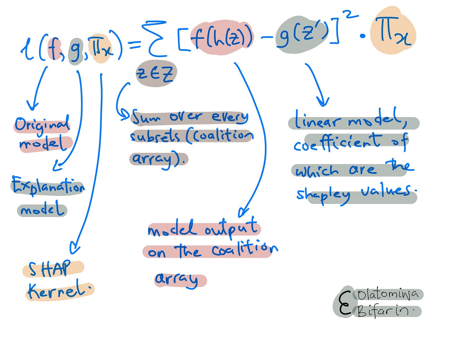 Now that we have a function we can work with, we need a loss function that would be used to optimize the coefficient of the linear model (which, as stated earlier, in this case is our Shapley values.)