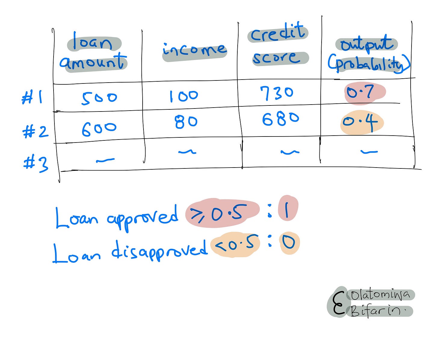 And I want to figure out why sample #1 has her loan approved (Prb = 0.7 (>0.5)).
