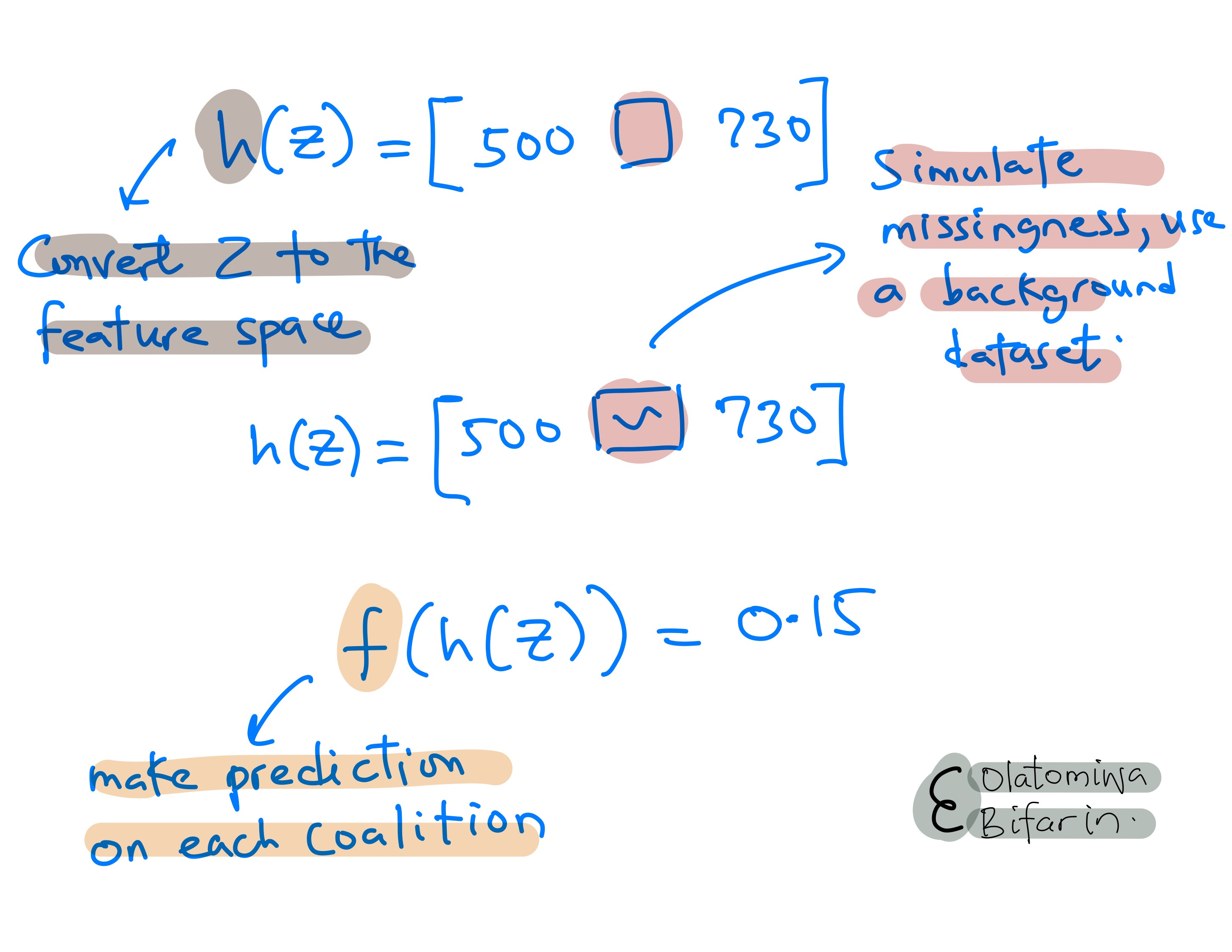 Three: as in Shapley values, compute the weight for each coalition with a special kernel function we can call SHAP kernel.