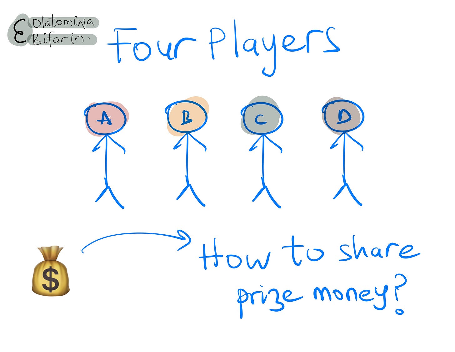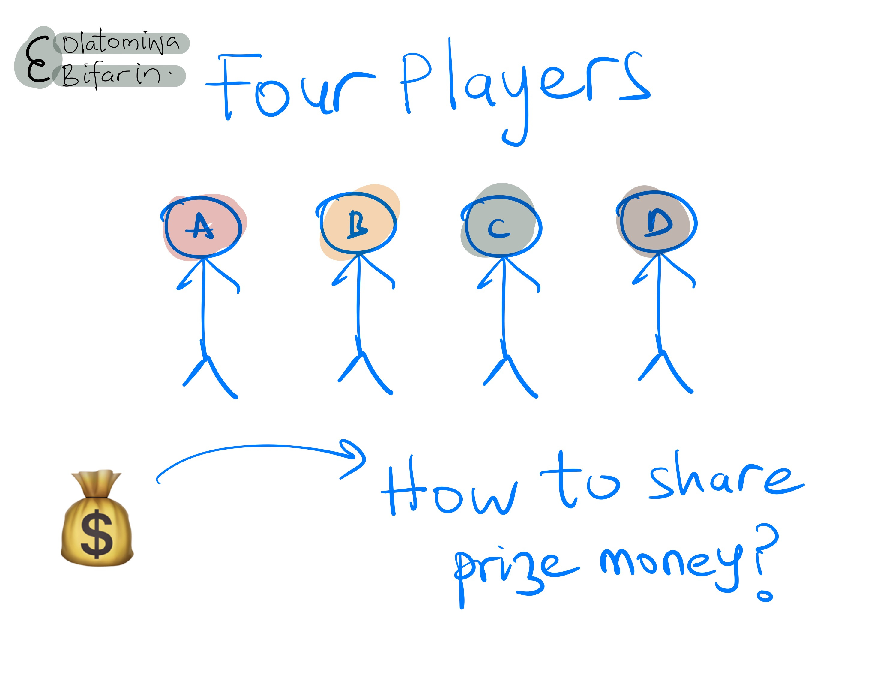 I must now figure out how to share the hefty prize money amongst the players – and this is important –according to their contributions to the game.